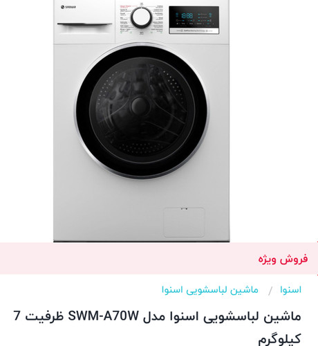 ماشین لباسشویی اسنوا ٧کیلویی