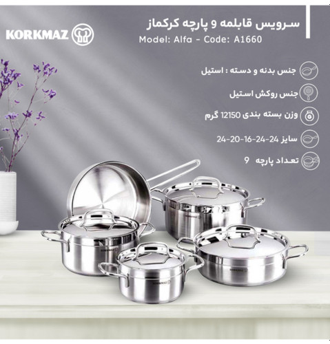 ناموجودسرویس قابلمه کورکمایز ترکیه ۹پارچه درب شیشه ای