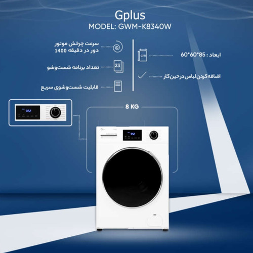 ماشین لباسشویی جی پلاس ۸کیلویی مدل ۸۳۴۰