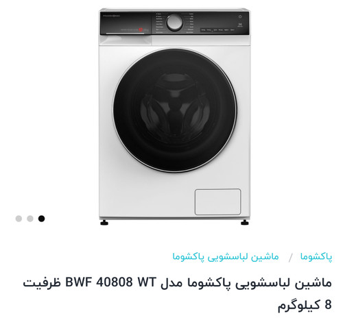 ماشین لباسشویی پاکشوما ظرفیت ٨کیلوگرم