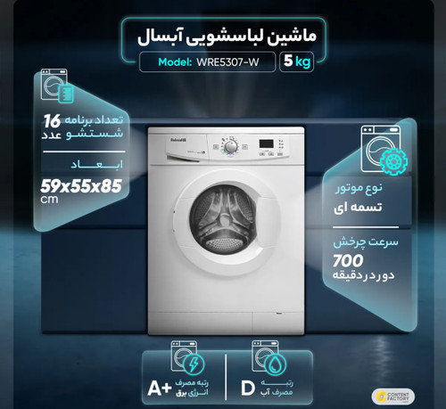 ماشین لباسشویی آبسال مدل WRE5307-W ظرفیت 5 کیلوکَرم