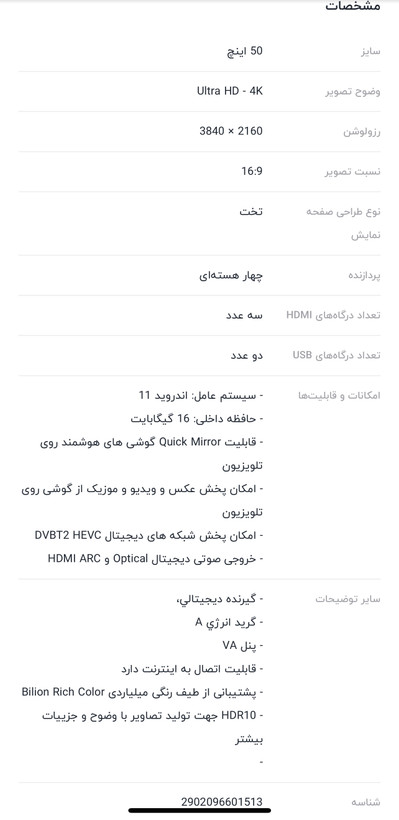 تلویزیون نکسار هوشمند ۵۰اینچ مدل ۶۱۸