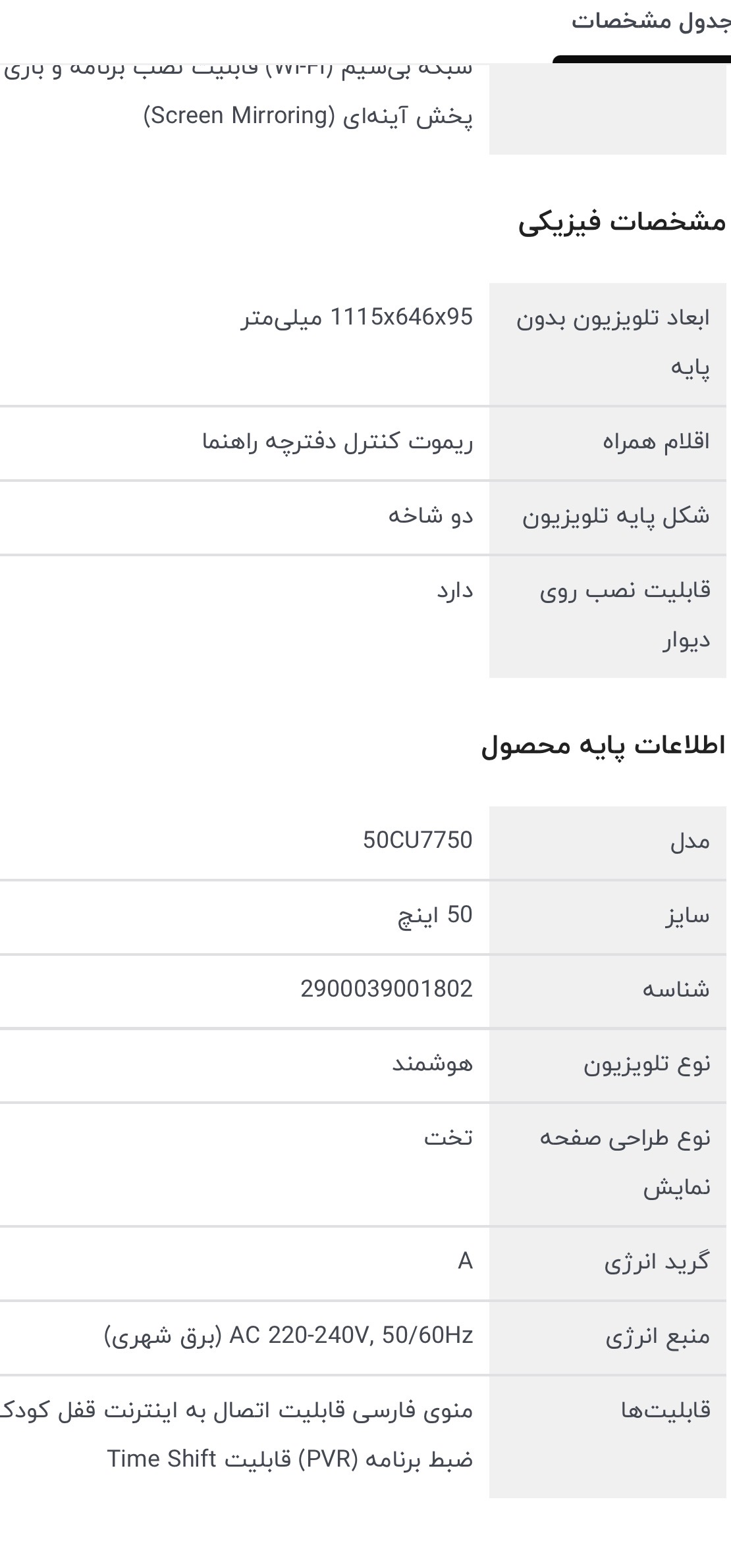 تلویزیون 50 اینچ ال ای دی هوشمند سام مدل UA50CU7750CC