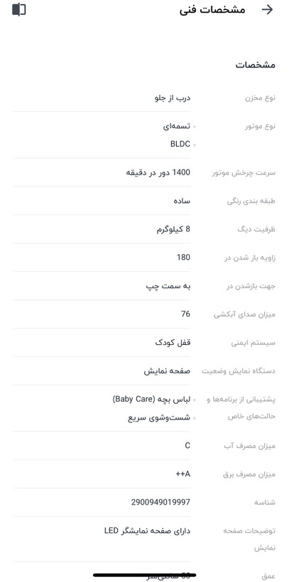 ماشین لباسشویی پاکشوما ظرفیت ٨کیلوگرم