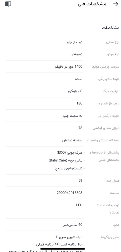 ماشین لباسشویی پاکشوما ظرفیت ٨کیلوگرم