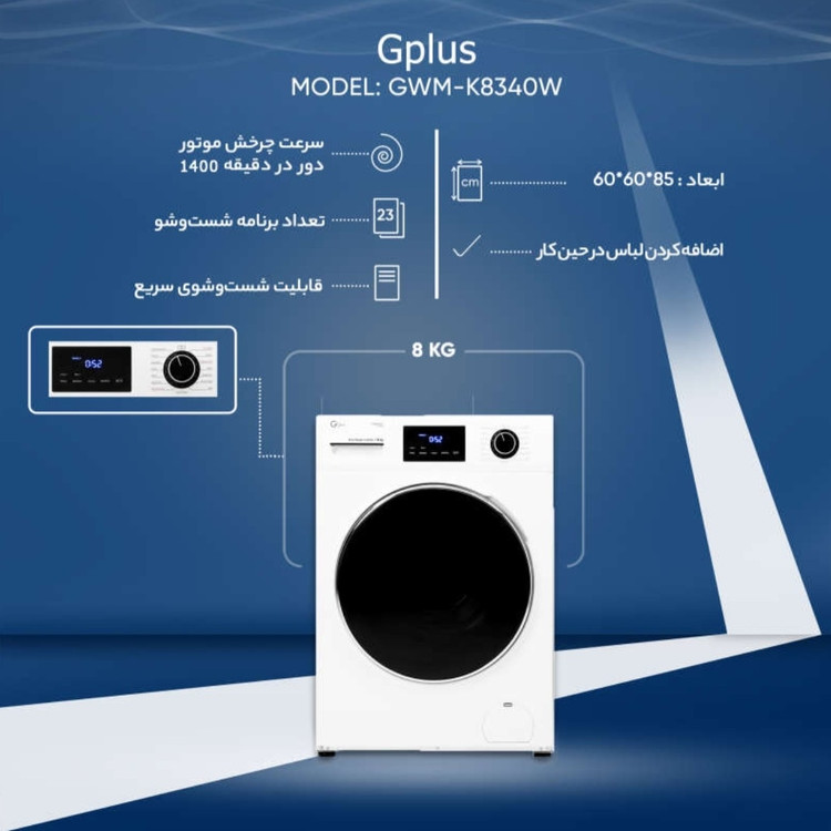 ماشین لباسشویی جی پلاس ۸کیلویی مدل ۸۳۴۰