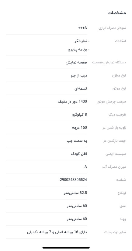 ماشین لباسشویی دوو ۸کیلویی مدل ٨٢١