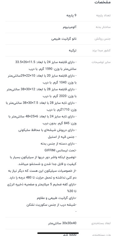 سرویس پخت و پز چدن ۹پارچه جی فی نی ایتالیا اصلی