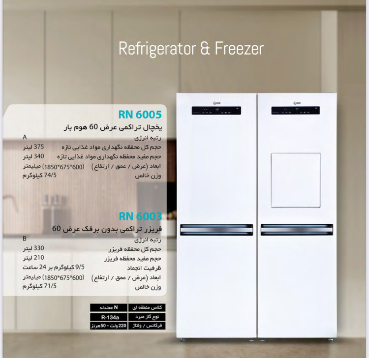 یخچال فریزر دوقلوی ام جی آی (MGI) مدلهای G-RN6015 و G-FN6013، با ظرفیت 20 فوت و عرض 60 سانتیمتر، از جمله محصولات باکیفیت شرکت سیلوان هستند. این مدلها مجهز به هوم بار بوده که دسترسی سریع به نوشیدنیها و مواد غذایی پرمصرف را فراهم میکند.