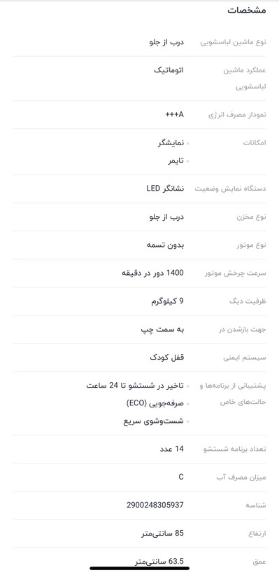 ماشین لباسشویی دوو مدل ٩٨١ظرفیت ٩کیلوگرم سیلوی