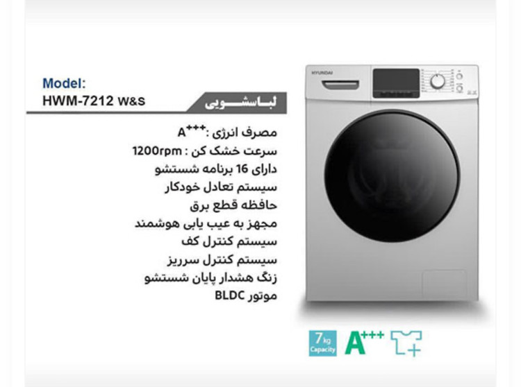ماشین لباسشویی هیوندای مدل HWM-7212 رنگ سیلور