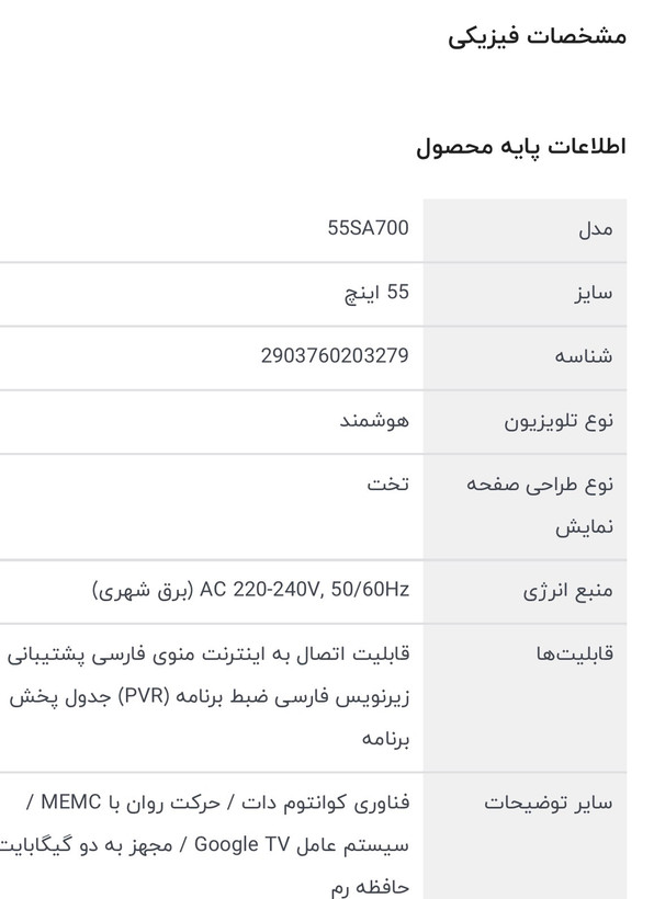 تلویزیون 55 اینچ ال ای دی هوشمند اسنوا مدل 55SA700 رونیا