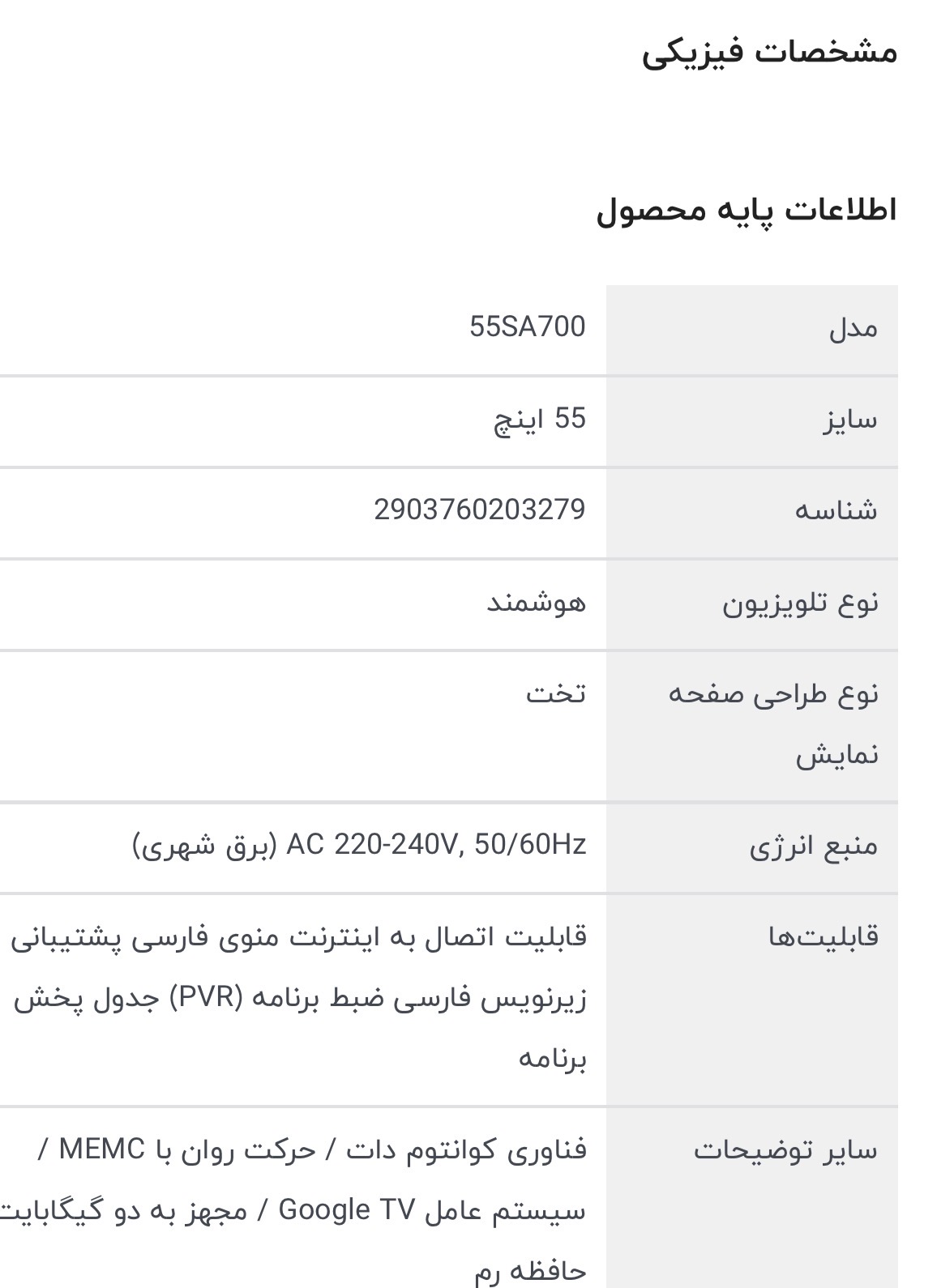 تلویزیون 55 اینچ ال ای دی هوشمند اسنوا مدل 55SA700 رونیا