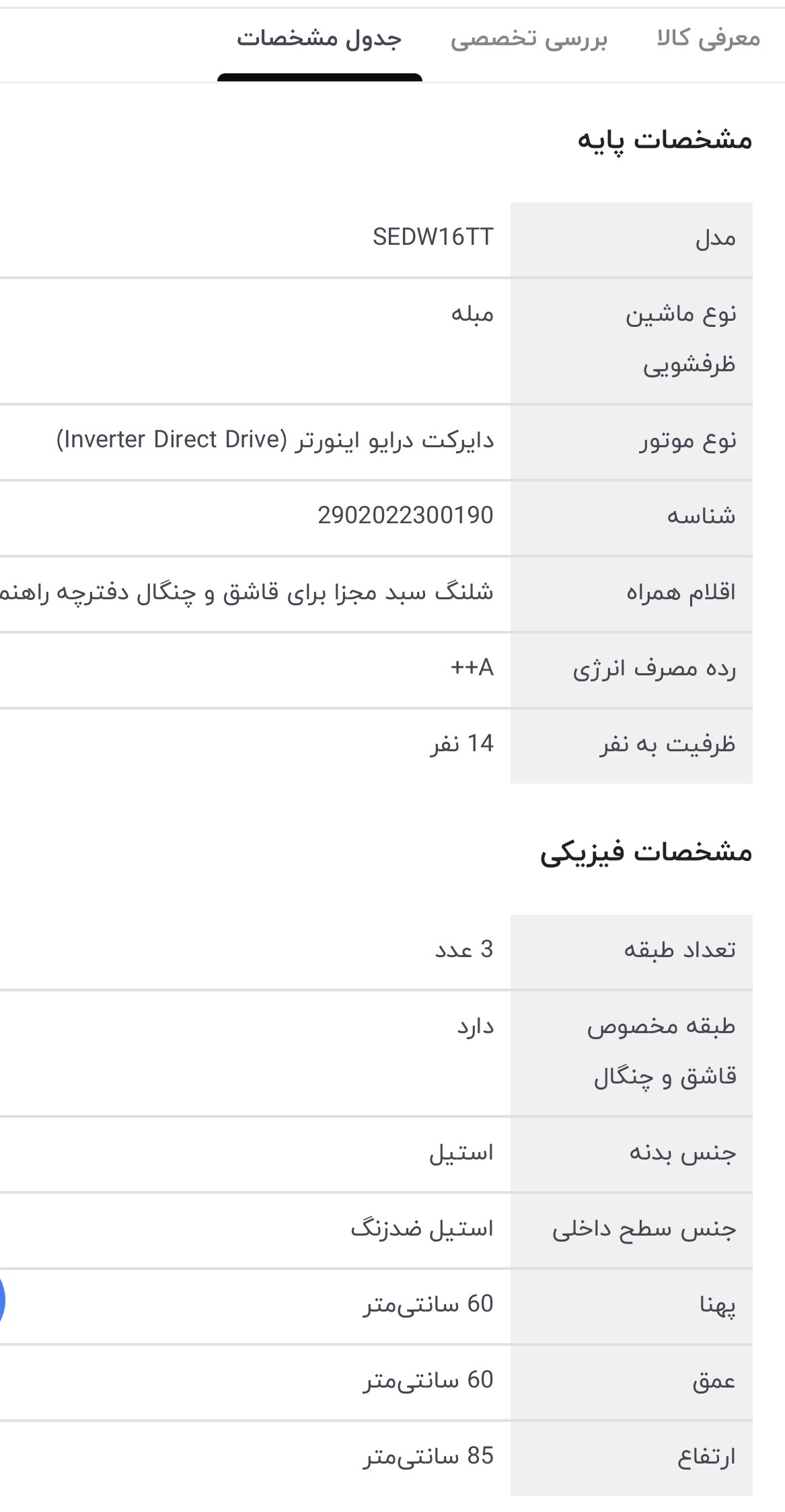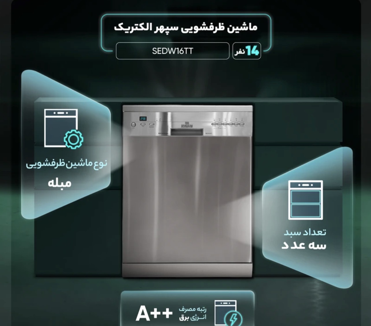 ماشین ظرفشویی 14 نفره سپهر الکتریک مدل SEDW16TT اینورتر سه سبد رنگ تیتانیومی و رنگ سفید
