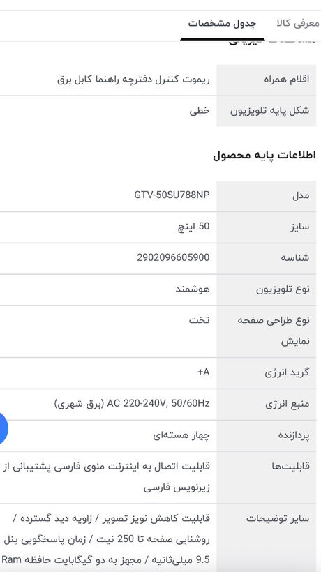 تلویزیون 50 اینچ ال ای دی هوشمند جی پلاس مدل GTV-50SU788NP