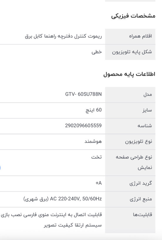 تلویزیون 60 اینچ ال ای دی هوشمند جی پلاس مدل GTV- 60SU788N
