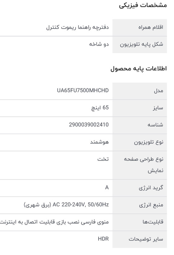 تلویزیون 65 اینچ ال ای دی هوشمند سام مدل UA65FU7500MHCHD