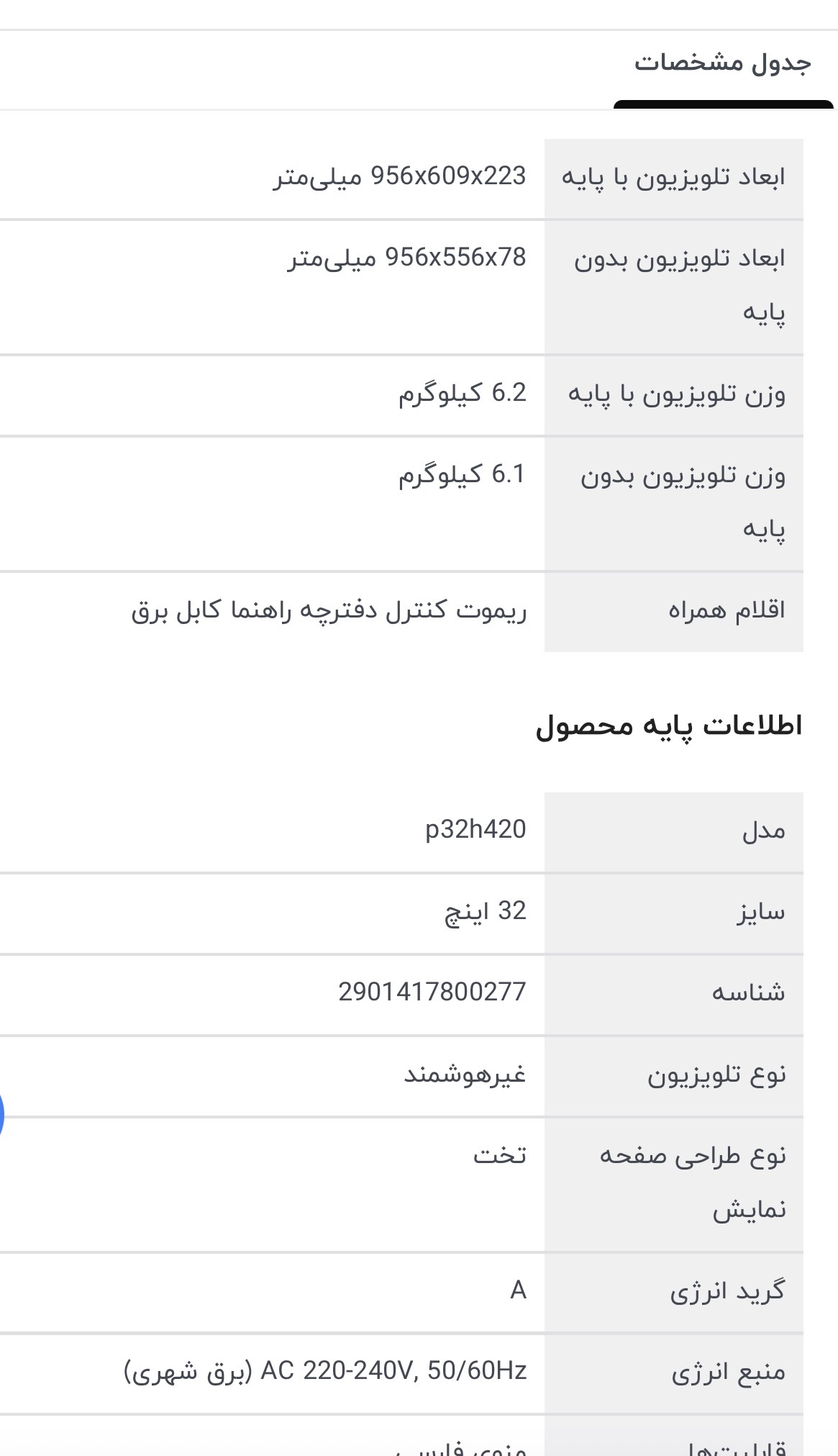 تلویزیون 32 اینچ ال ای دی پارس مدل p32h420